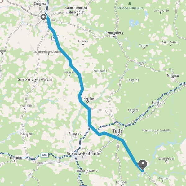 Continuer Route de Tulle sur 2,8 kilomètres