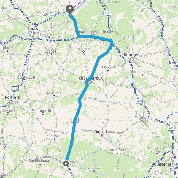 Prendre à gauche et rejoindre A71 E9. Continuer sur 6 kilomètres