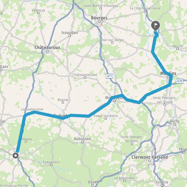 Prendre à droite et rejoindre A71. Continuer sur 22 kilomètres