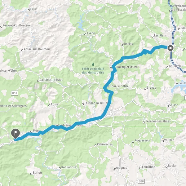 Tourner légèrement à droite sur D908 (Route de Bédarieux) et continuer sur 5,2 kilomètres