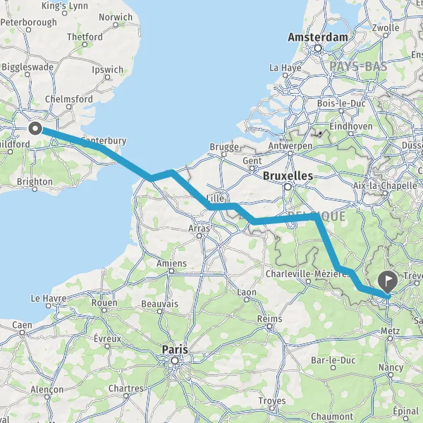 Prendre le ferry E15 (Dover - Calais) pendant 1 heure 38 minutes