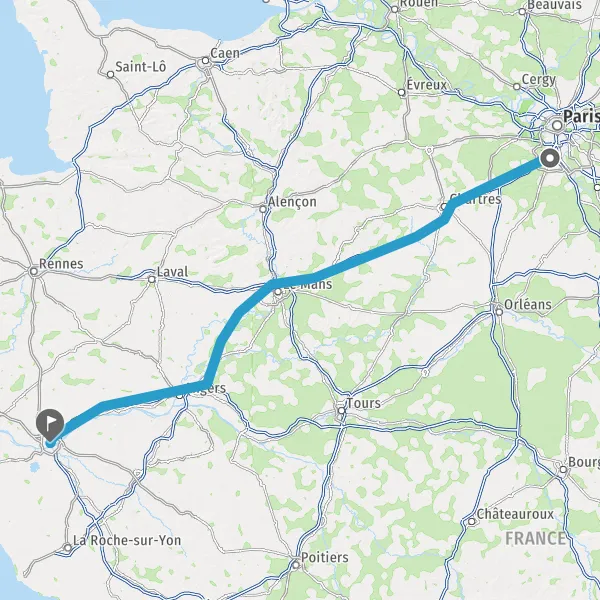 Prendre à droite et rejoindre A11 E50. Continuer sur 147 kilomètres