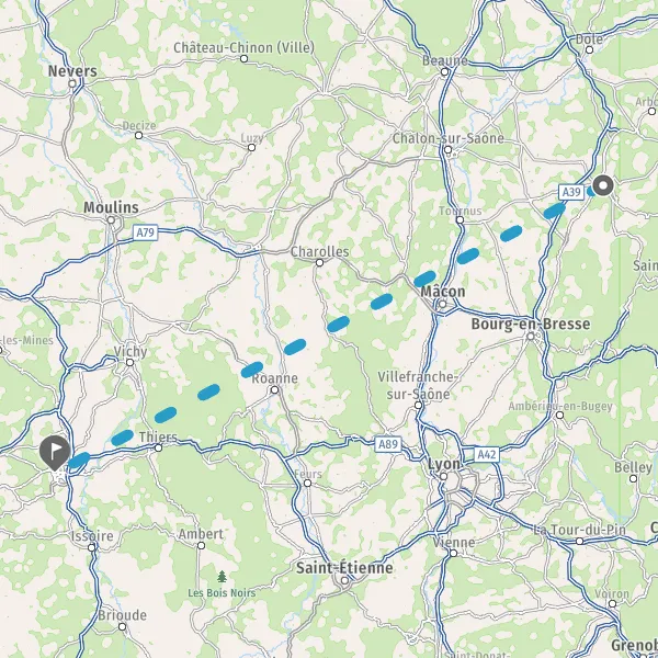 Continuer et rejoindre A89 E70. Continuer sur 77 kilomètres