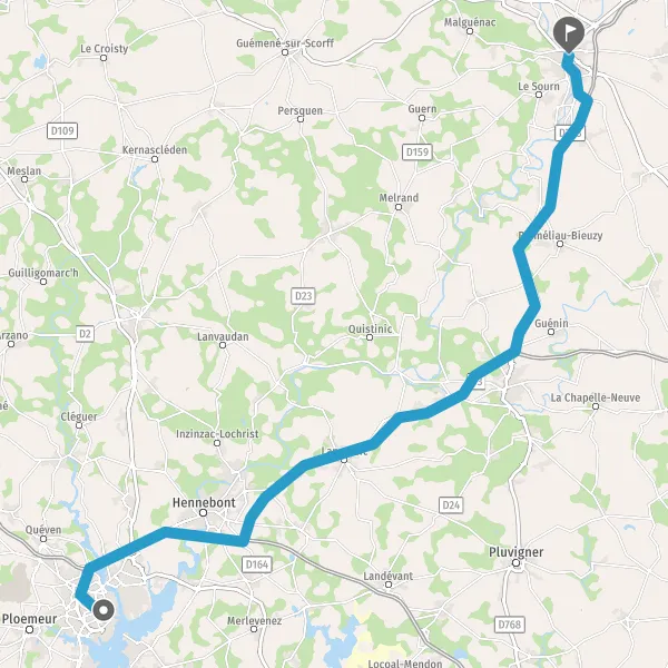 Au rond-point, prendre la 2ème sortie sur D768 (Route de Pontivy) et continuer sur 20 kilomètres