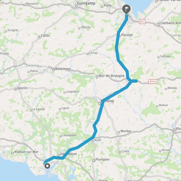 Trajet de Lorient (56100) à Saint-Brieuc (22000) en voiture