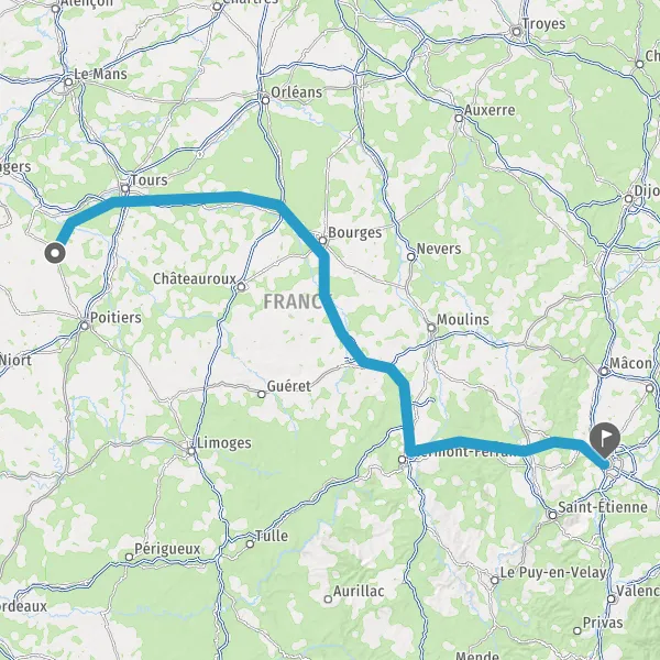 Prendre à droite et rejoindre A85 E60. Continuer sur 115 kilomètres