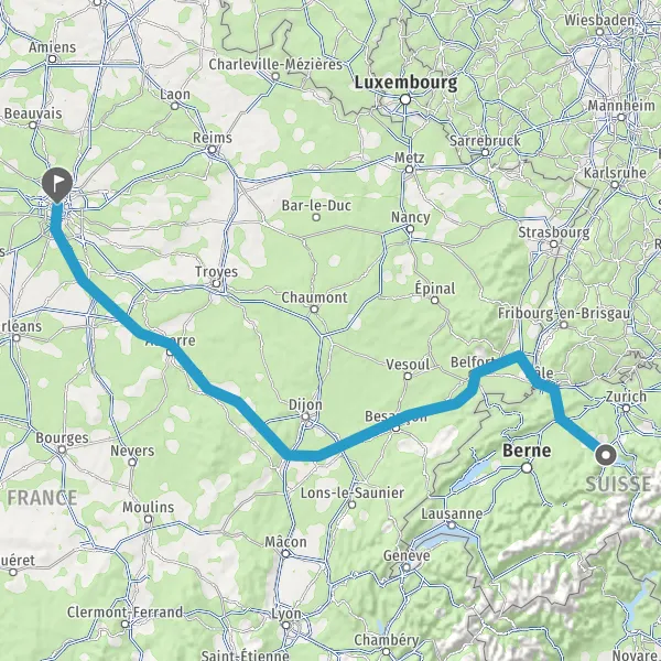 Prendre à gauche et rejoindre A36 E54 E60. Continuer sur 228 kilomètres