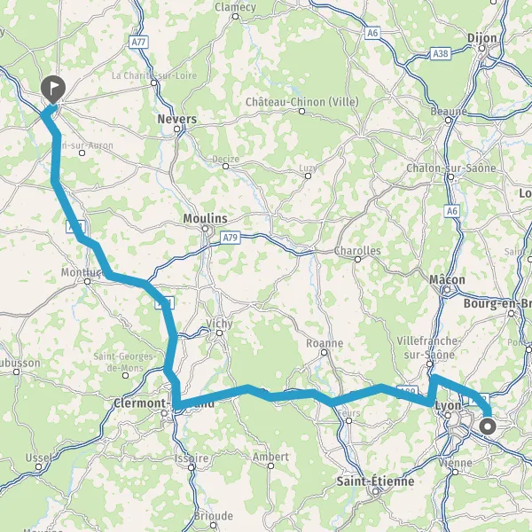 Continuer et rejoindre A89 E70. Continuer sur 83 kilomètres