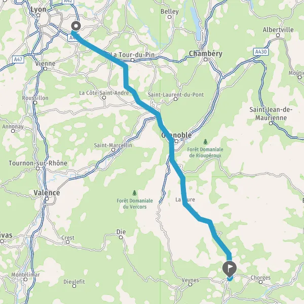 Prendre à droite et rejoindre A48. Continuer sur 51 kilomètres