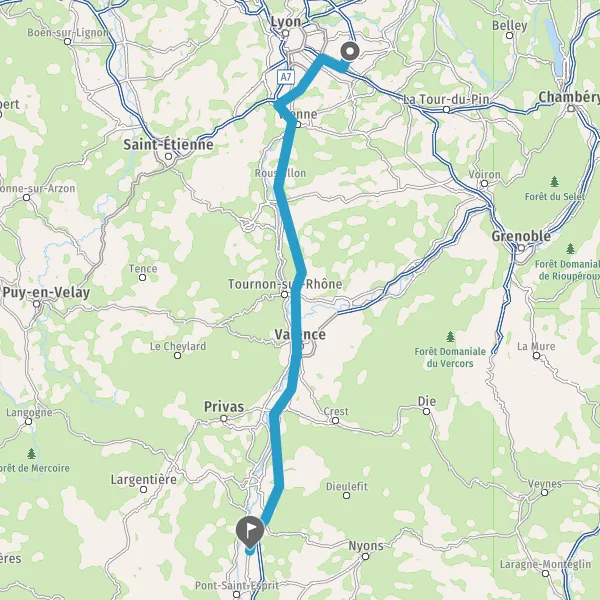Prendre à gauche et rejoindre A46 E15 E70. Continuer sur 21 kilomètres