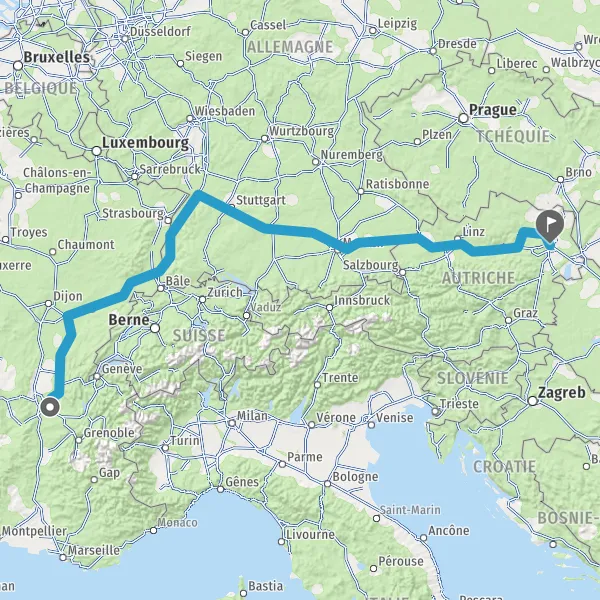 Prendre à droite et rejoindre A36 E60. Continuer sur 196 kilomètres