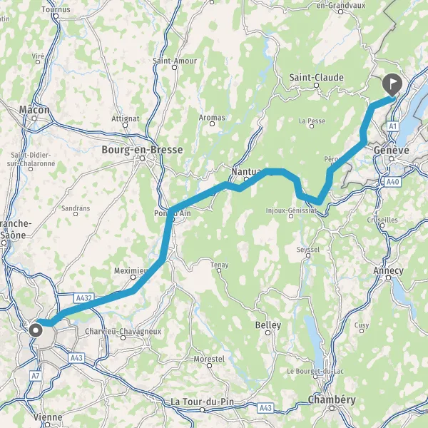 Autoroute Blanche-Tunnel de Chamoise Autoroute Blanche-Tunnel de Saint-Germain Autoroute Blanche-Tunnel de Châtillon Autoroute Blanche-Tunnel du Vuache Payer 18,90 € (Péage Viry) 59 km