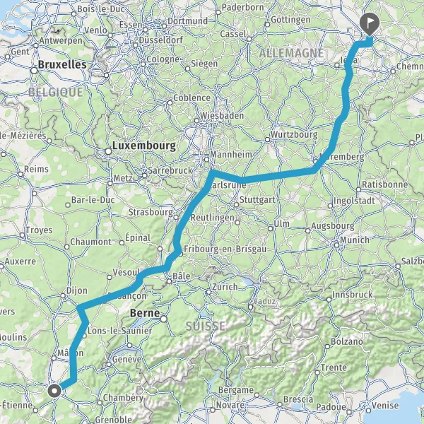 Prendre à droite et rejoindre A36 E60. Continuer sur 196 kilomètres