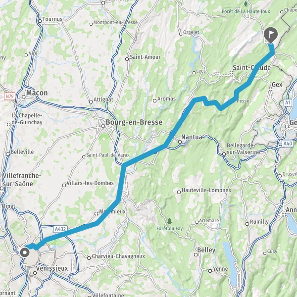 Prendre à droite et rejoindre A42. Continuer sur 4,4 kilomètres
