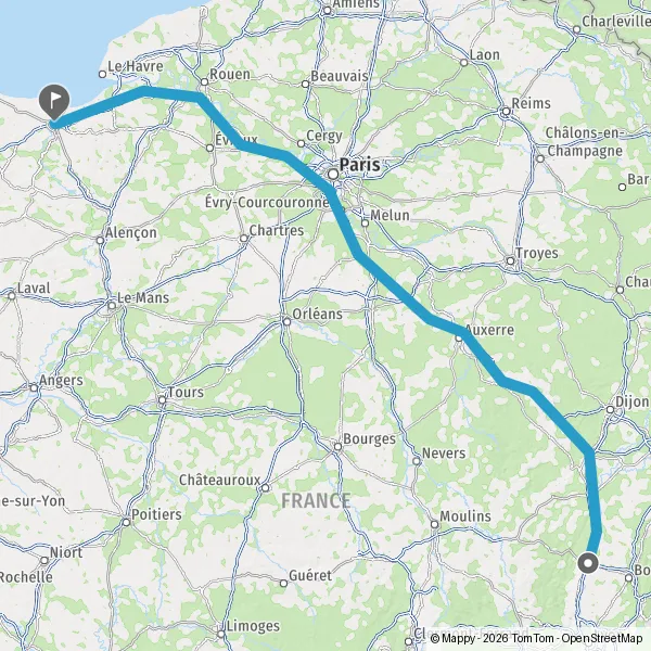 Prendre à droite et rejoindre A6. Continuer sur 294 kilomètres