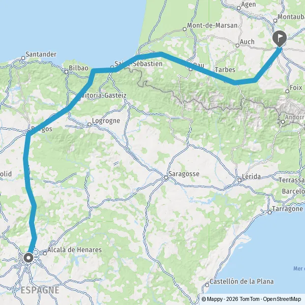 Prendre à droite et rejoindre AP-1 AP-1 AP-8 E-80 E-70 E-70 E-5 E-5. Continuer sur 20 kilomètres