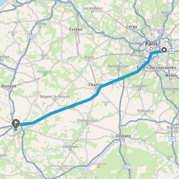 Prendre à droite et rejoindre A10. Continuer sur 34 kilomètres