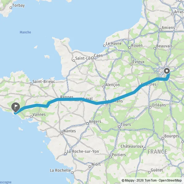 Prendre à droite et rejoindre A11 E50. Continuer sur 147 kilomètres