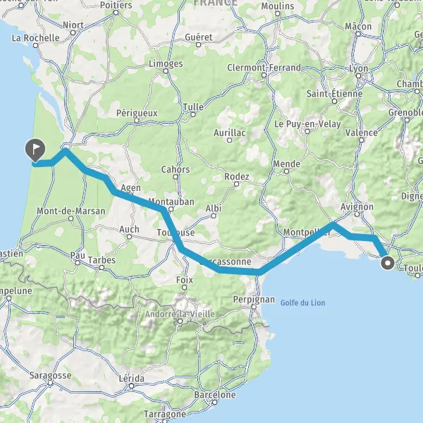 Prendre à droite et rejoindre A61. Continuer sur 136 kilomètres