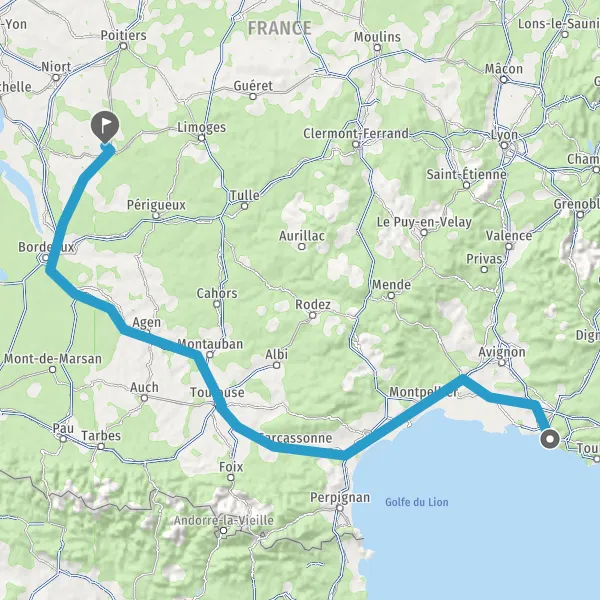 Prendre à droite et rejoindre A61. Continuer sur 136 kilomètres