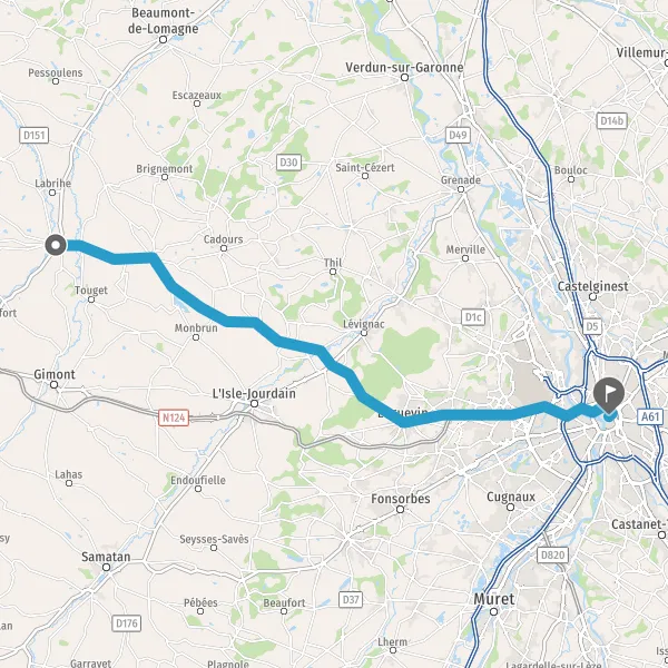 Au rond-point, prendre la 2ème sortie sur Route de Toulouse et continuer sur 1,2 kilomètre