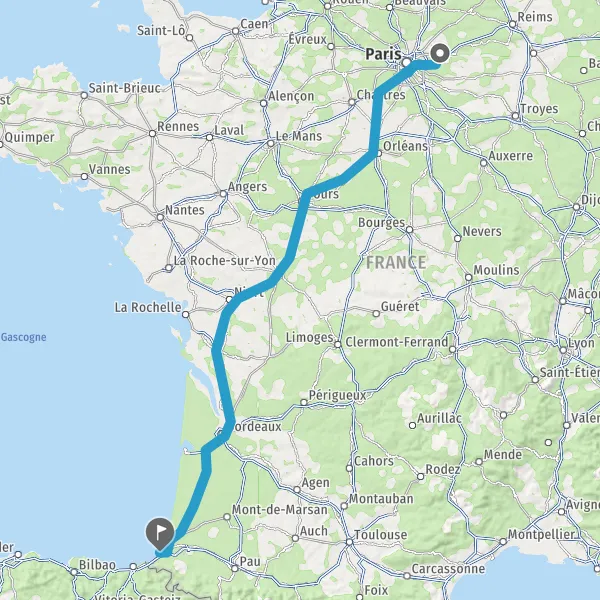 Prendre à droite et rejoindre A63. Continuer sur 183 kilomètres