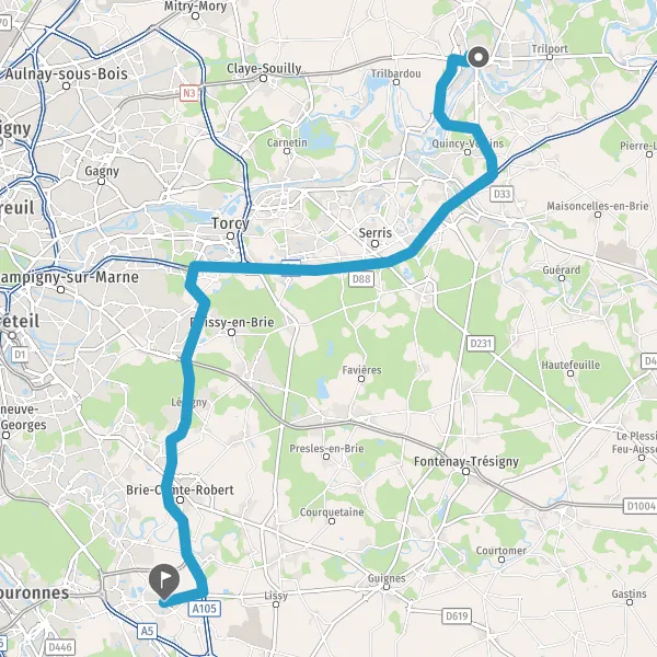 A4MelunMarne-la-ValléeCoulommiersCrécy-la-ChapelleQuincy-Voisins