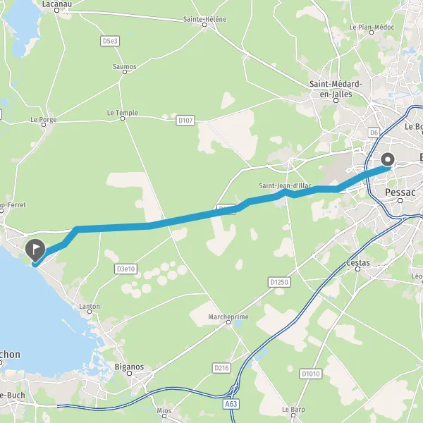 Tourner légèrement à droite sur D215 (Avenue de Bordeaux) et continuer sur 1,8 kilomètre