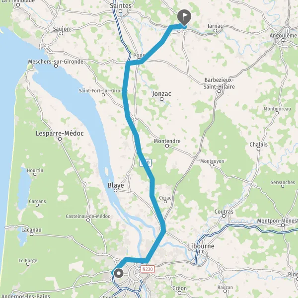 Au rond-point, prendre la 3ème sortie sur D732 (Route de Gémonzac) et continuer sur 2,7 kilomètres