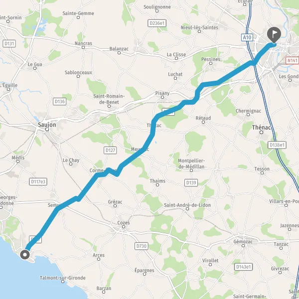 Tourner à gauche sur D127 (Rue de Thézac) et continuer sur 3 kilomètres