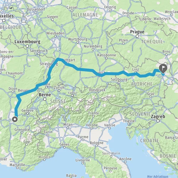 Prendre à droite et rejoindre A36 E60. Continuer sur 196 kilomètres