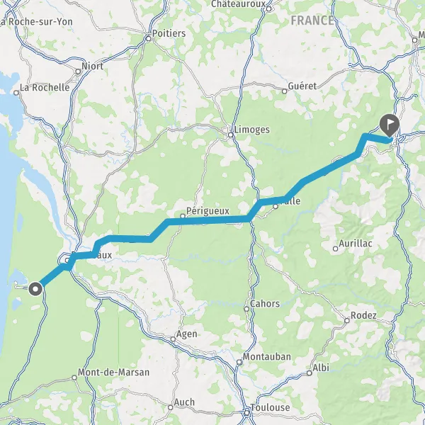 Prendre à gauche et rejoindre A63 E5 E70. Continuer sur 26 kilomètres