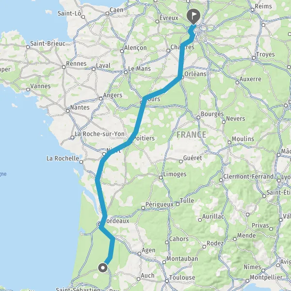 Prendre à droite et rejoindre A65 E7. Continuer sur 71 kilomètres
