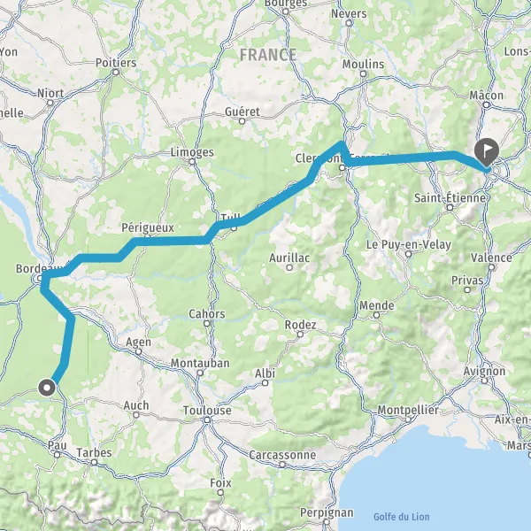 Prendre à droite et rejoindre A65 E7. Continuer sur 71 kilomètres