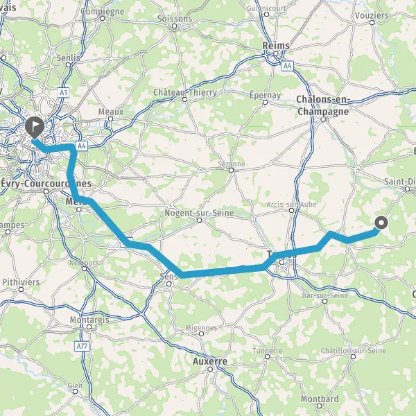 Prendre à droite et rejoindre A5. Continuer sur 115 kilomètres