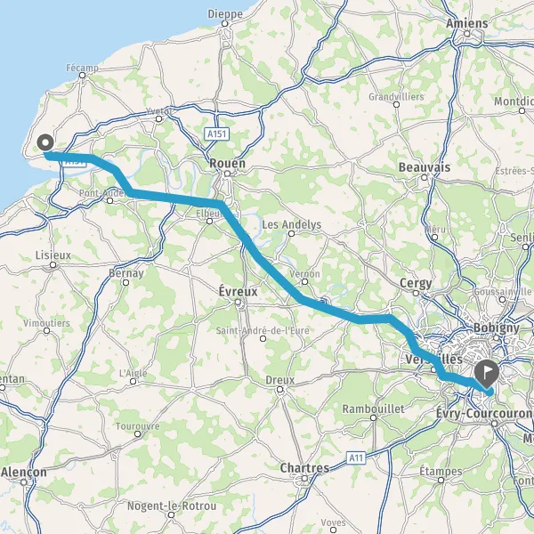 Continuer A13 E5 E46 sur 122 kilomètres