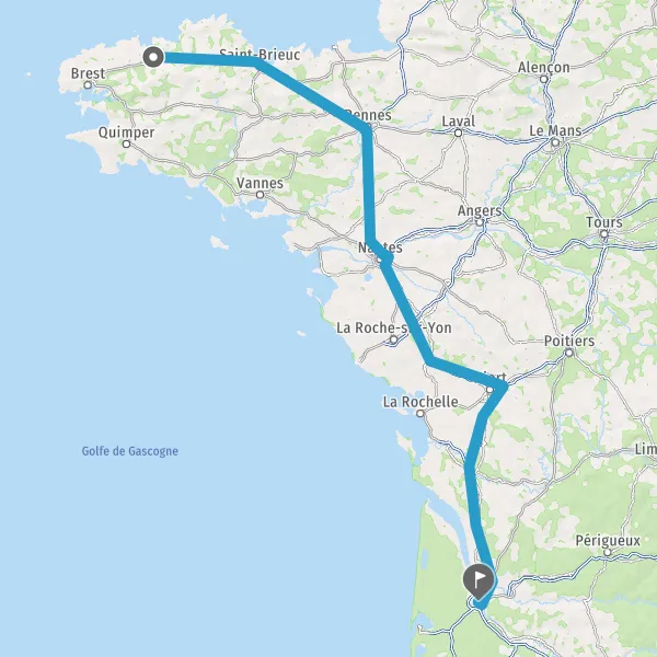 Prendre à droite et rejoindre A83. Continuer sur 150 kilomètres