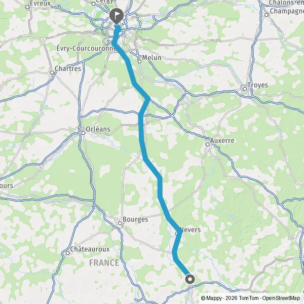 | Distance en voiture | 292 km à 309 km |