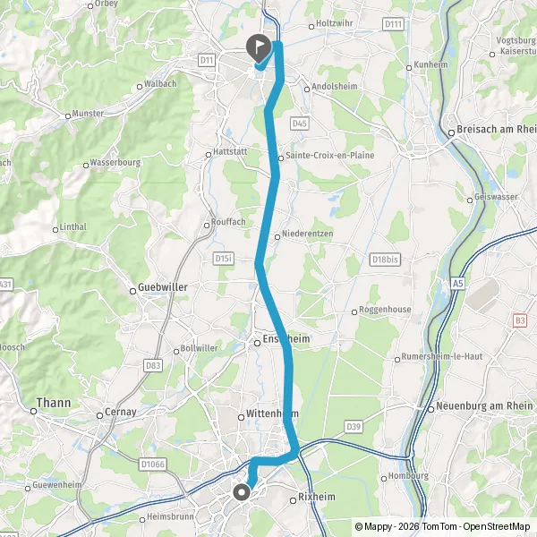 Avec le mode voiture, vous pouvez configurer vos options (type de véhicule, autoroute ou non, péage ou non, distance la plus courte), tout en ayant accès aux infos de circulation grâce à notre service d'info-trafic en temps réel. Ainsi faites des économies sur le coût ou la durée de votre voyage, en trouvant le trajet Mulhouse Colmar adapté à vos besoins.