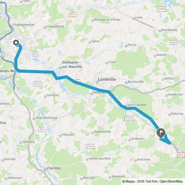 Au rond-point, prendre la 2ème sortie sur D590 (Route de Nancy) et continuer sur 1,9 kilomètre