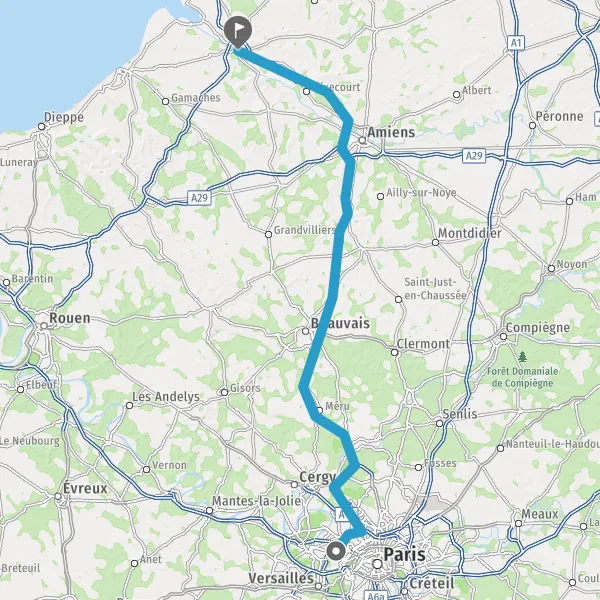 Prendre à droite et rejoindre A115. Continuer sur 10 kilomètres