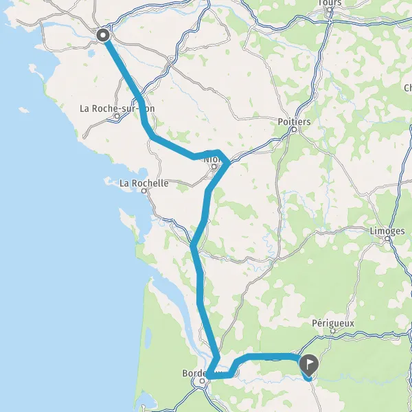 Au rond-point, prendre la 2ème sortie sur Boulevard de Vendée et continuer sur 151 kilomètres