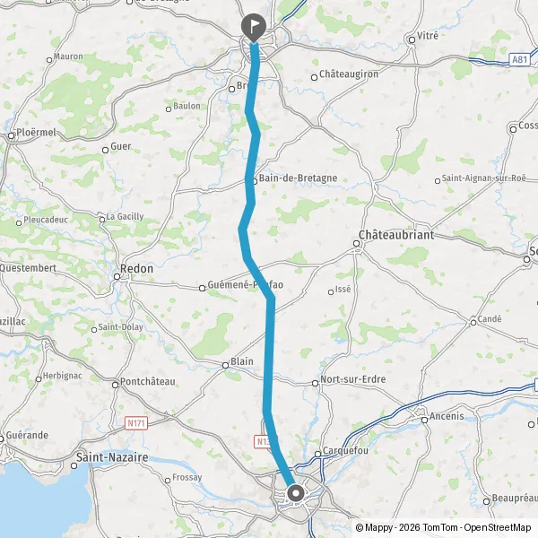 Tourner légèrement à droite sur Route de Rennes et continuer sur 500 mètres