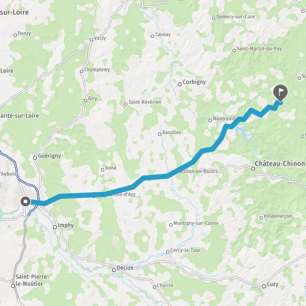 Au rond-point, prendre la 3ème sortie sur D978 (Route de Château-Chinon) et continuer sur 15 kilomètres