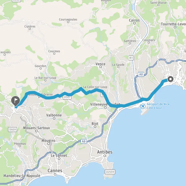Trajet de Nice (06000) à Grasse (06130) en voiture
