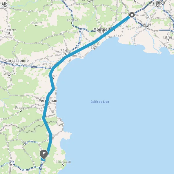 Prendre à droite et rejoindre A9 E15 E80. Continuer sur 32 kilomètres