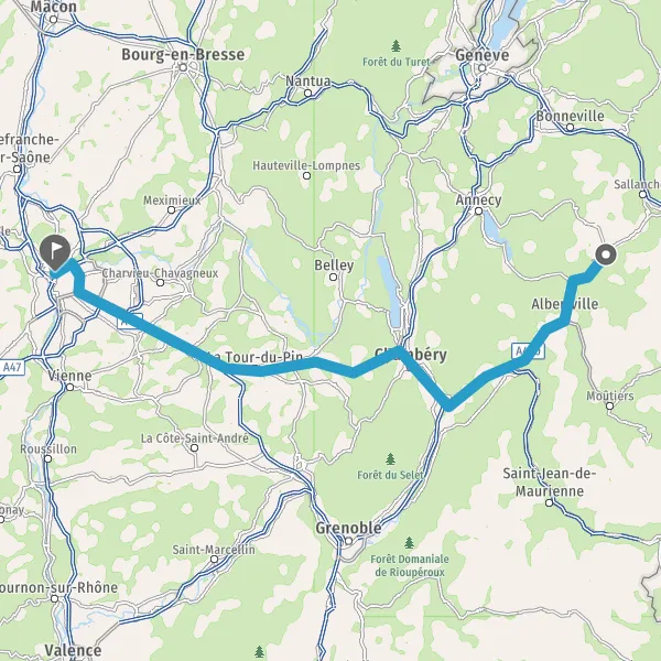 Continuer et rejoindre A43 E70. Continuer sur 80 kilomètres