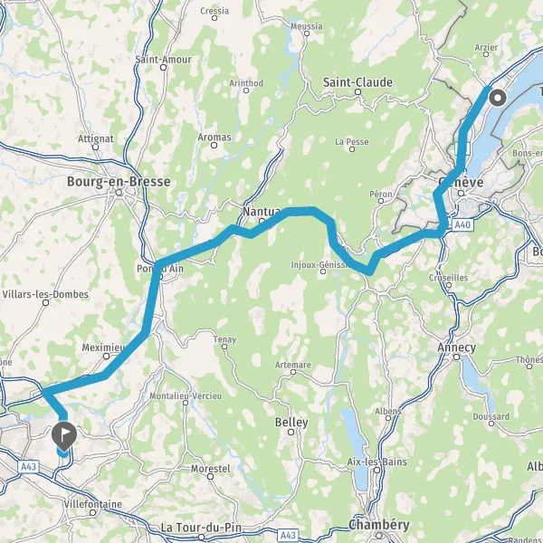 Prendre à droite et rejoindre A42 E611. Continuer sur 40 kilomètres