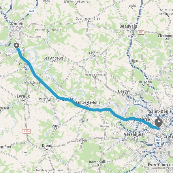 Prendre à droite et rejoindre A13 E5. Continuer sur 59 kilomètres