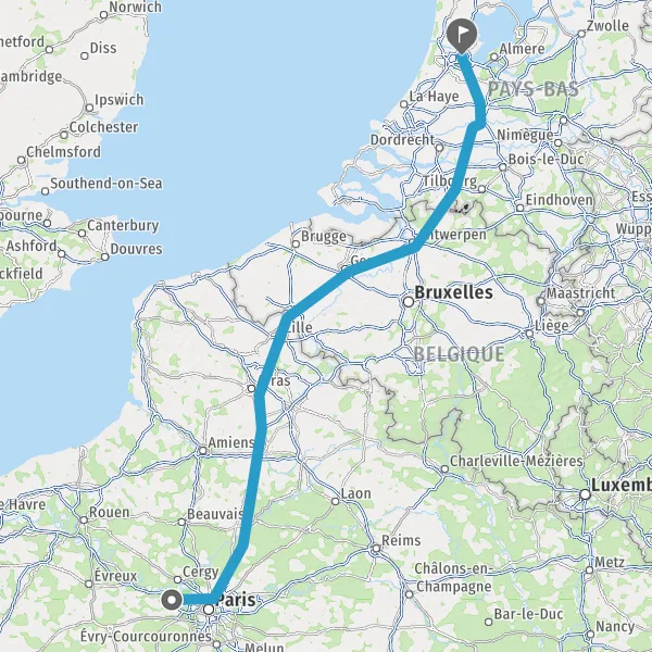 Continuer E19 (Autoroute du Nord) sur 124 kilomètres